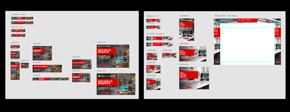Sample of the variety of banner sizes for Texas Instruments